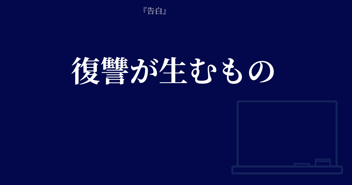 この「本当の復讐」は、誰から誰へのものだったのか。娘を殺された森口先生の、Aに対する「最愛のものを失う」復讐か。 自分を捨てた母に対する、A自身の復讐なのか。 それとも、そのどちらもなのか……。