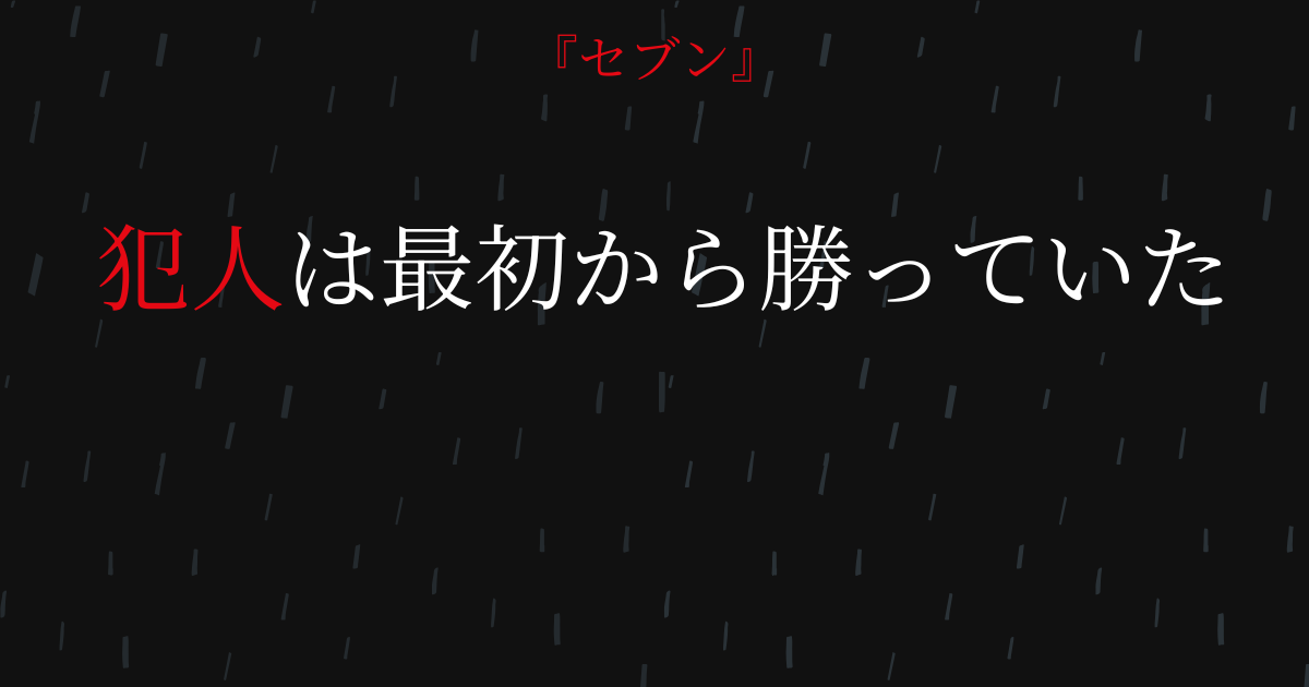 多くの犯罪映画は正義が勝つ。しかし『セブン』は違う。犯人は計画を完遂し、主人公はそれを止められない。